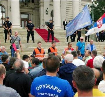 Траже заштиту од државе: Крагујевачки оружари испред Скупштине у Београду