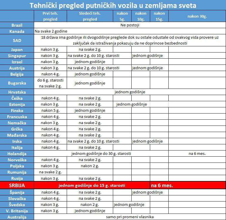 Да се ради о потпуно неоправданој мери, потврђује и чињеница да се у европским земљама технички прегледи врше двогодишње, а само у мањем броју земаља једном годишње и то само за возила старија од десет година. Шестомесечни прегледи не постоје ни у једној.