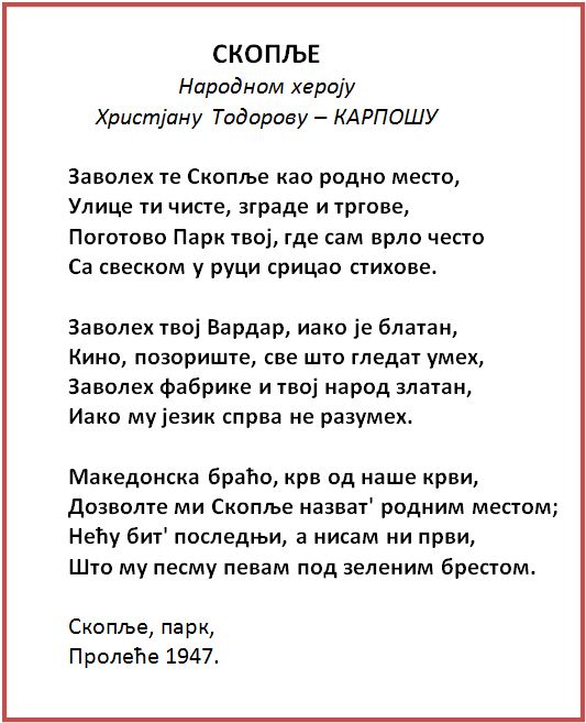 Академик Буровић је годинама, живио, учио, студирао и радио у Скопљу и тај град је сматрао и својим другим родним местом. Ту је одслужио војни рок. Ту је написао и објавио многа своја дјела, од којих је нека, посебно пјесме, и посветио Скопљу и Македонцима као својој истородној браћи.