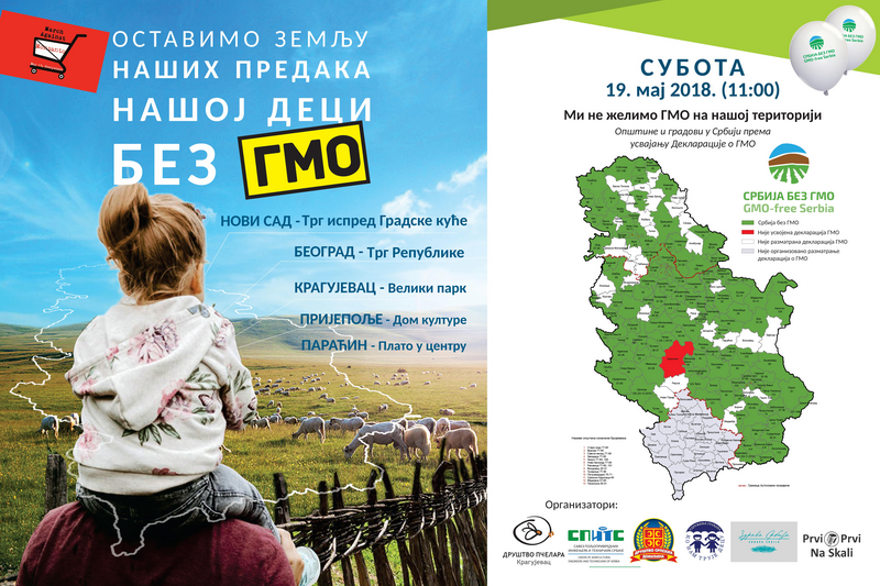 Јавни скуп у покрету „За Србију без ГМО – Марш против Монсанта“ биће организован у Београду на Тргу Републике у суботу 19. маја од 10 часова и 30 минута. Организатори скупа су: Друштво српских домаћина, Савез пољопривредних инжењера и техничара Србије (СПИТС) и УГ Здрава Србија и Ко нам трује децу.