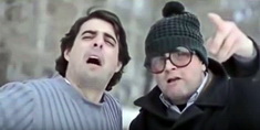 Димитрије Бањац (десно) тумачи улогу „академика, доктора, професора Кишпрдилов Светислава који комшији показује црно дете. Скеч из ТВ серије „Велика Србија“, ТВ Б-92, 2012. г.