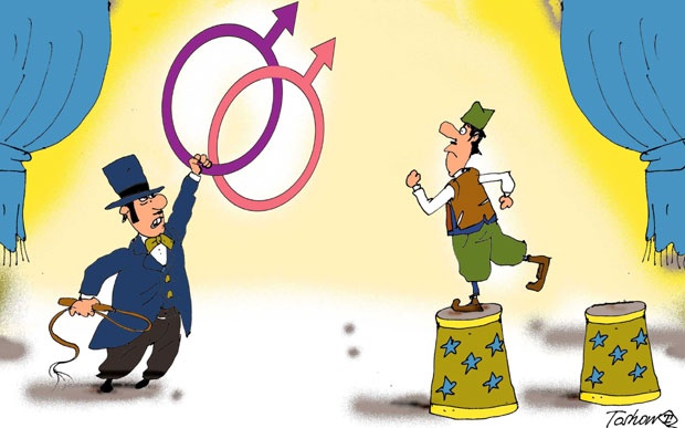 Да би нам ово насиље постало јасно по својим порукама, посегнућемо за недавним догађајем који се одиграо у самој влади Републике Србије у коју спадају установе пред којима Ристивојевић и Димитријевић треба да докажу да фиктивна Повереница за родну равноправност постоји. Догађај је у духу истородан са тужбама ове фиктивне Поверенице, а веома је сликовит и захвалан пример како се силује памет и извршава насиље над сувислим расуђивањем – чиме се ките тужбе и украшавају за неког новог човека, што ми веома личи на оно када су комунисти међу Србима стали да стварају новог човека. А као што се зна најуспешнији у том свом лику новог човека били су најватренији уништитељи Срба и српског духовног наслеђа, односно основне претње за ту њихову замисао. Да их не именујемо. Довољно је рећи да је један од њих недавно добио улицу у самом центру Београда, а не бих се зачудио и да споменик добије онај кога је поново увео међу Србе, и пазио као рођеног оца, песник академик са биографијом из које брише да је основао и уређивао први српски порнографски часопис.