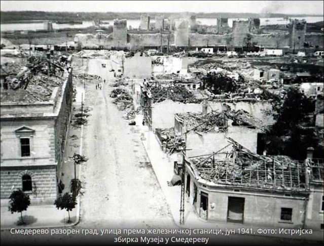 Петог јуна 1941. у 14 часова и 14 минута, под до данас неразјашњеним околностима, одлетело је у ваздух складиште експлозива у Ђурђевој тврђави. У једном трену живот је изгубило између 2.500 и 4.000 људи, а око 5.000 је било рањено. Прву процену броја погинулих дала је немачка команда у Бечу: 4.000. Број жртава је, временом, континуирано смањиван, али то се односи на становништво Смедерева и околине, док је број пострадалих Немаца, којих је тога тренутка у граду било више хиљада јер су се спремали за одлазак у рат на Совјетски Савез, такође непознат. Немци су своје мртве односили и сахрањивали у Немачкој. (Ти подаци вероватно негде постоје у немачким архивама.) Број жртава никада није утврђен, нити је држава предузимала истрагу о томе; једном речју, страдања српског народа су у целом 20. веку мало кога бринула, што нам говори о томе да дуго имамо туђине за владаре. Од 2.400 кућа, само 25 није оштећено, док су куће у пречнику од десетак километара од тврђаве порушене до темеља, подаци су тадашње комисије за обнову Смедерева. Стравична експлозија муниције која је у то време лагерована у древном здању Бранковића направила је на том месту кратер пречника педесет и дубине око девет метара,а на град се сручило најмање четири хиљаде тона камена из зидина тврђаве. Прозорска стакла су се распрсла и у насељима на ободу Смедерева.