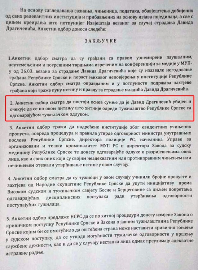 Интересантно је питање зашто „Скупштина“ не објављује стенографске белешке, већ тај посао од огромног јавног значаја обавља приватни портал Фронтал. На основу садржаја стенограма, тамо нема никаквог пиштоља који се пуши нити убедљивог и сувислог објашњења за судбину Давида Драгичевића. Постоји само констатација да је убијен, што је равно проналаску топле воде. Кључно питање је ко га је убио и зарад какве политичке агенде? Зашто интелектуалне громаде из владајуће већине не изврше анализу транскрипата у односу на климаве закључке које је усвојила опозициона већина унутар Анкетног одбора, да би се видело да ли и у којој мери информације добијене путем саслушања позваних сведока подржавају или су у нескладу са усвојеним закључцима? Да ли би разумна особа, на основу истих података, могла да изведе различите закључке?