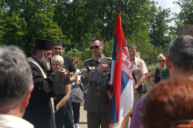 Негде око пола два, испред цркве на Равној Гори паркирају се четири аутобуса, са око 200 припадника Војске Србије. То су официри, углавном из Генералштаба, и цивилна лица на служби у војсци, мушкарци и жене. Скоро сви су у цивилу. У униформи је онолико официра колико је предвиђено протоколом за церемонију одавања поште.
