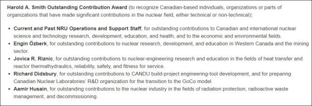 Одређеније, он је награђен за значајан допринос у истраживању и образовању у нуклеарном инжењерству у области преноса топлоте и механике флуида у нуклеарним реакторима, као и поузданости, сигурности и расположивости система и компоненти нуклеарних реактора.