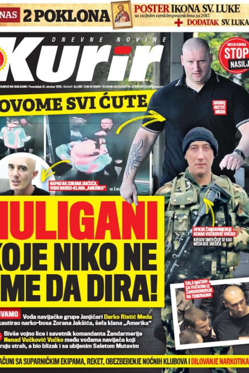 Официр жандармерије међу вођама навијача и дилерима наркотика. Насловна страна Курира