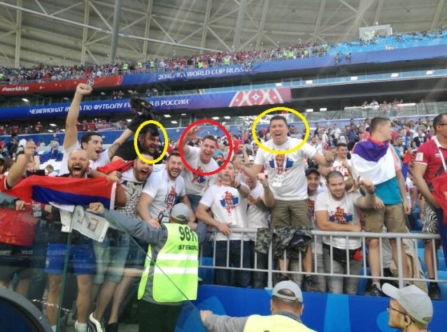Син председника Србије на Светском првенству у Русији на стадиону у Самари усликан са припадником Партизанове навијачке групе Алкатраз, који је осуђен на 15 година затвора због убиства навијача 2011. (та првобитна пресуда му је поништена па чека ново суђење) и са припадником криминалне групе која је у Београду растурала наркотике а која је била позната као група Александра Станковића познатијег као Сале Мутави. Текст и фото: Србија данас