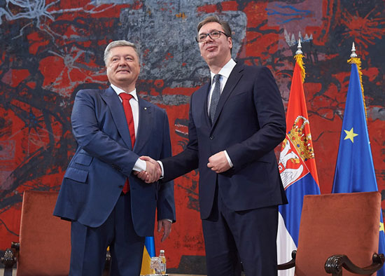 „Ми у Кијеву улажемо све напоре да се обнови суверенитет земље на целој територији и рачунамо на подршку Србије када је реч о увођењу мировне мисије уз надзор УН. Уверен сам да спровођење споразума из Минска нема алтернативу“, нагласио је председник Порошенко и истакао да две земље немају проблеме у билатералним односима.