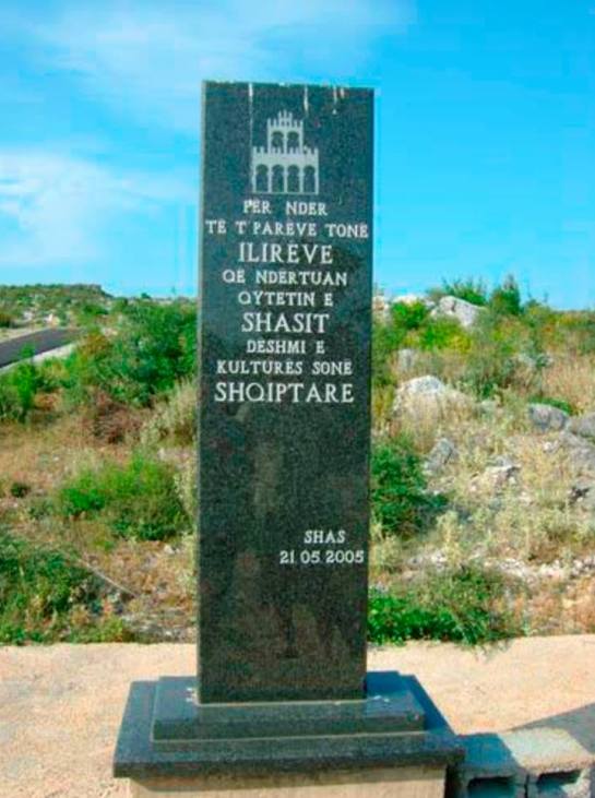 „У ЧАСТ НАШИХ ПРЕДАКА ИЛИРА КОЈИ САГРАДИШЕ ОВАЈ ДРЕВНИ ГРАД СВАЧ КАО ЗАОСТАВШТИНУ НАШЕ АЛБАНСКЕ КУЛТУРЕ“