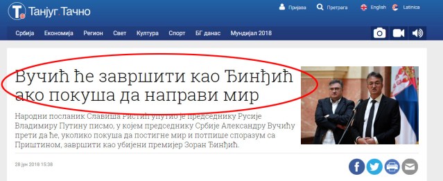 Сада ћу вам прочитати само неке од наслова са насловних страна новина : „Вучићу прете смрћу на Видовдан“, „Лов на Вучића“, „Креће коначни обрачун“, „Вучићу, завршићеш као Ђинђић“, „Ужасне претње српског посланика“ и тако даље.