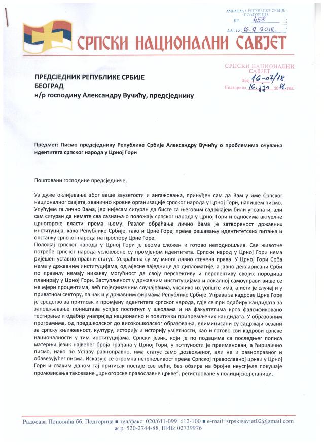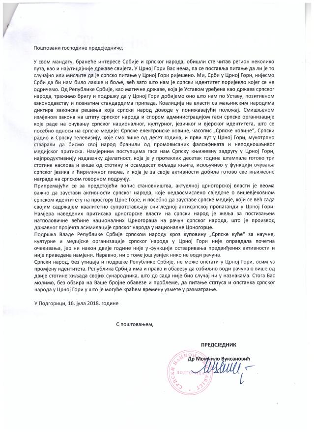 (*Текст писма: Срби из Црне Горе преко амбасаде послали писмо Вучићу: Помагајте, нестаћемо!)