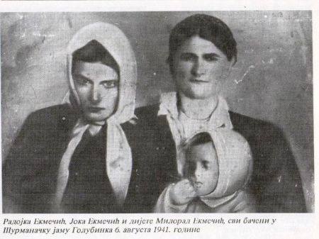 Serbian family: Radojka, Joka and little Milorad Ekmečić. All thrown by Croats into the Golubinka pit, in Medjugorje on this day 1941, together with 2000 other Serbs from the area. The Independent State of Croatia