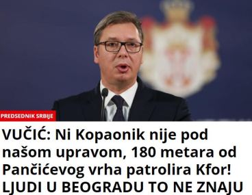 Уместо да прича о надлежности својих служби на Панчићевом Врху који јесте на територији ц. Србије, Вучић намерно скреће са теме, помиње близину административне линије и надлежност КФОРА „над Копаоником” – све са циљем да оправда своју власт од прљавих радњи, злочињења и нечињења.