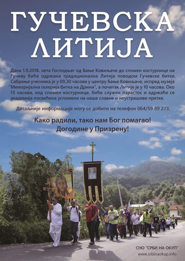 Дана 1.9.2018. лета Господњег од Бање Ковиљаче до спомен костурнице на Гучеву биће одржана традиционална Литија поводом Гучевске битке. Сабрање учесника је у 09.30 часова у центру Бање Ковиљаче, испред музеја „Меморијална галерија битка на Дрини”, а почетак Литије је у 10.00 часова. Око 13 часова, код спомен костурнице, биће одржан парастос и одржаће се академија посвећена успомени на наше славне и неустрашиве претке.