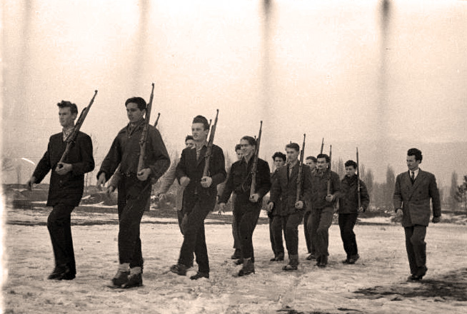 Предвојничка обука средњошколаца 1. мушке гимназије, Калемегдан-Доњи Град, Београд 1950.