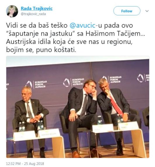 Већ данима медији у Аустрији указују на то да би још пре планираног наставка дијалога у Бриселу баш у Алпбаху Вучић и Тачи могли имати важне разговоре, прве након што је председник Србије предложио разграничење, а косовски политичар тражио Прешевску долину.