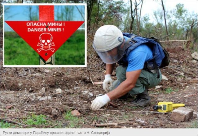 Руски деминери чисте део Србије који је претрпео бомбардовање 1999. године, али и санирају простор на којем је у октобру 2006. експлодирао војни магацин са муницијом. Најмрачније НАТО успомене, без сумње, јесу касетне бомбе, које су и неексплодиране подједнако опасне као и активиране.