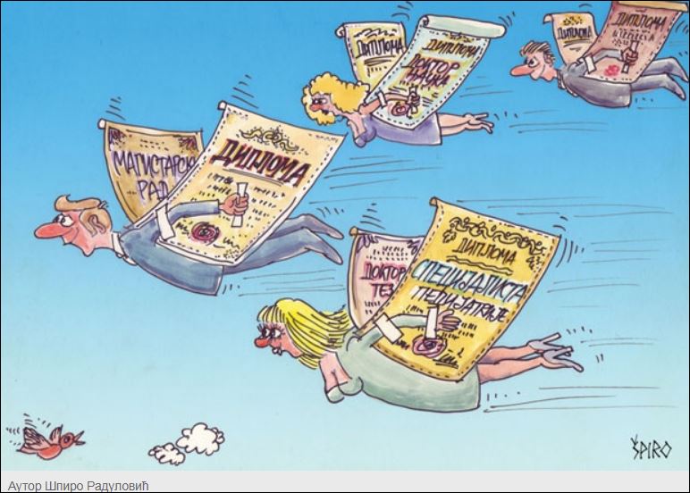 Ово, нажалост, није шала, нити пародија, већ само један од стотине огласа који се могу видети на сваком кораку. Препуни су их интернет портали и друштвене мреже, стигли су до огласа у дневним новинама и бандера испред факултета. Судећи по понуди, не мањка ни тражња, па је оно о чему се некад, у заборављено „време стида“, шапутало, данас уносан бизнис. А за многе студенте легитиман, нормалан пут до академског звања.