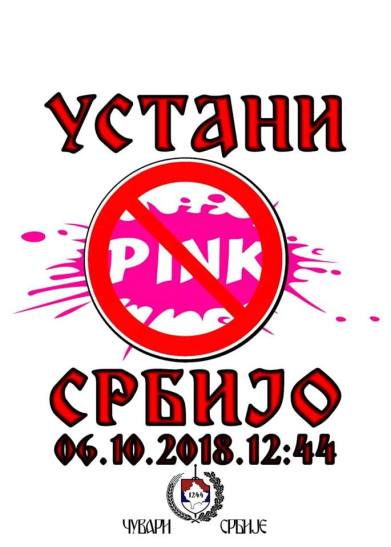 Да би Срби поново почели да мисле својом главом, дођите на протест 6. октобра у 12,44 часова испред ТВ Пинка, да станемо на пут том медијском чудовишту. Крећемо од Пинка, јер ако то медијско смеће заврши тамо где му је место, све друго ће бити много лакше. Срби, пробудите се и побуните се, почните да освајате слободу која вам је отета!