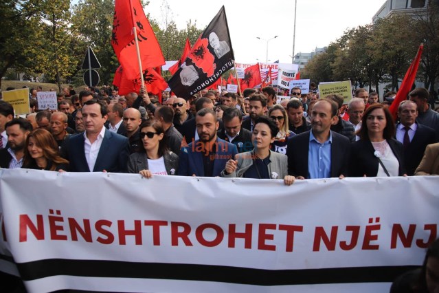 Председник опозиционог покрета Самоопредељење, Аљбин Курти, дочекан је аплаузом на Тргу Скендербег у Приштини, одакле је поручио да је овај протест за одбрану „Републике Косова“, а против политике Хашима Тачија који угрожава косовску независнот.