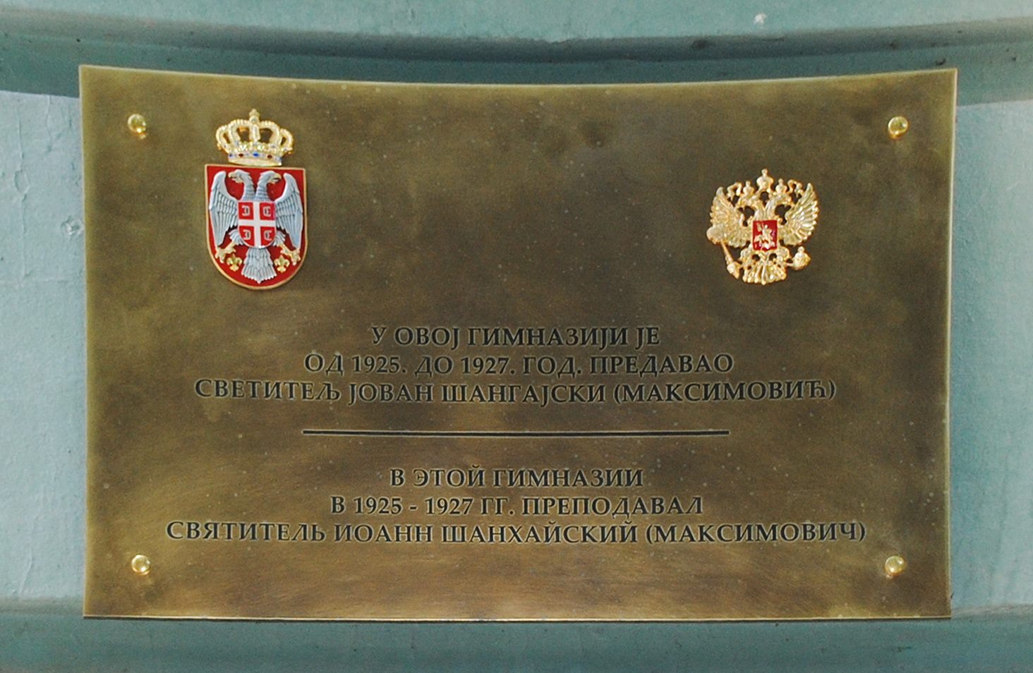Пошто сам шест година био православни катихета у Гимназији, чињеница да је Светац ту радио натерала ме је да Светог Јована Шангајског вратим у Гимназију. Читајући писмо које је Светац написао гимназијалцима, видео сам колика је његова посвећеност раду у школи. Како је радио у Гимназији, тако је радио на свим местима којима је прошетао својим босим стопалима. Моја је жеља да Свети Јован буде светац-заштитник наше школе, и да га обележавамо према црквеном календару као славу колектива школе. Ове годне на скроман начин смо први пут обележили дан Светога Јована Шангајског – 2.јула.