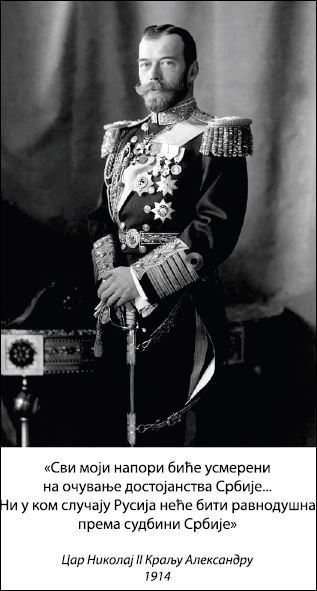 Када је 23. јула 1914. године Аустроугарска поставила ултиматум Србији, српска влада се исте вечери обратила Русији за помоћ. Свега шест дана након тога, 30.јула Цар Николај II је позитивно одговорио на молбу српске владе. Аустроугарска војска је тада већ напала Србију. Русија, као заштитница Србије, ушла је неспремна у рат против Аустроугарске, којој се прикључила Немачка. То је био почетак великог страдања православних земаља и мученичког краја царске породице Романов.