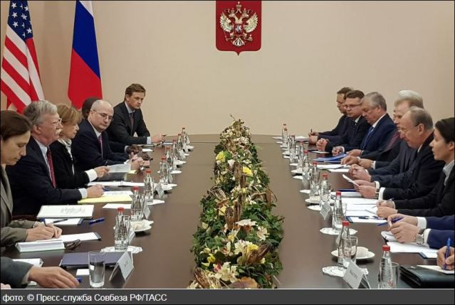 Амерички саветник за националну безбедност Џон Болтон разговарао је у Москви са секретаром руског Савета за безбедност Николајем Патрушевим о споразумима који се тичу ограничења офанзивног наоружања и употребе нуклеарних снага.
