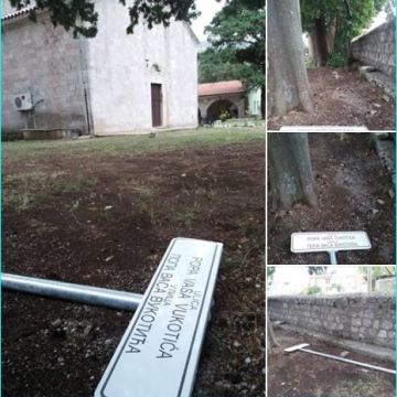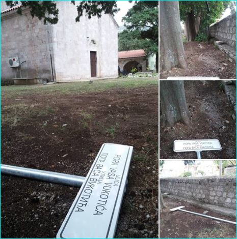 Published at 465 × 470 in Огњен Војводић: Сломљена табла натписа улице попа Васа Вукотића у Бару и убачена у двориште православне цркве