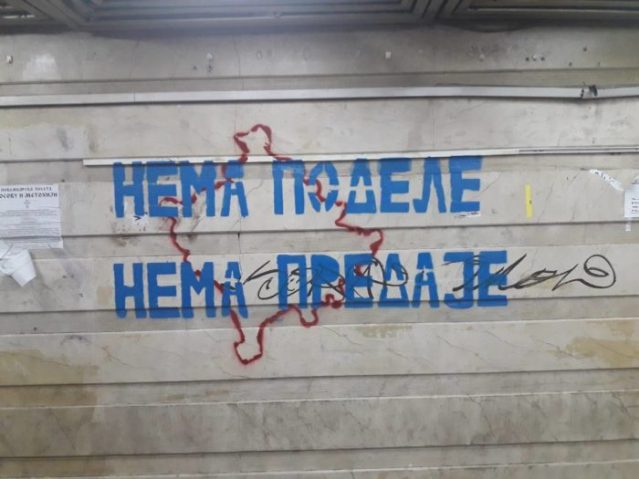 Центар Београда је у суботу 4. новембра освануо, од Калемегдана па до Теразија, са графитима који јасно поручују, да када је у питању јужна српска покрајина, Косово и Метохија, „Нема предаја, нема подела”.