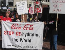 ❝ Током готово више од године дана, жене из племена Палшимад у дистрикту Палагат, у Керали, организовале су седећи протест (по узору на Гандија – поседале су на улицу), због исушивања подземних водених сливова од стране компаније Кока-Кола. Потребно је 9 литара воде да би се направио литар Кока-Коле.