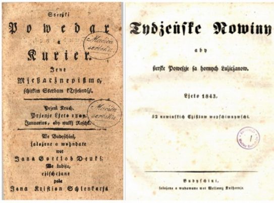 Што се тиче српских лутерана, на универзитету у Липсику су основали Српско проповедничко друштво (СПД). Његов први председник Јан Кжесчан Август Коцор, затим преводилац Јан Венцељ, Јан Ринч и лингвиста Јан Заломон Френцел (син Саломона Богухвала Френцела) издали су на Универзитету у Липсику „Липске новине и обавештења“ (Lipske nowizny a wšitkizny). Биле су то прве српске новине и изашле су 1766. године у два броја. Матица српска у Будишину чувала је пажљиво ове најстарије драгуље српске публицистике, али су они нестали у вихору Другог светског рата.