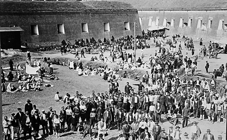 Први транспорт стигао је у Арад 17. августа, где су их сместили у тврђаву крај реке Мориш. „Кад су транспорти учестали и број интернираних достигао 5.500, даване су им најгоре и најрђавије просторије, буквално речено прави казамати. Људе су смештали у смрдљиве и мемљиве, никад од сунца огрејане тунеле, где су често спавали на влажној земљи и уђубретеној слами” (Ћоровић 1920, 1996).