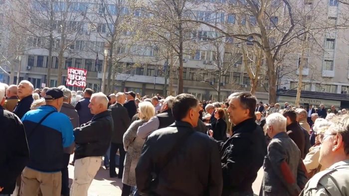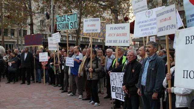 Пензионери су одлучили да на улици изразе своје незадовољство и да траже своја права. Скуп углавном старих људи, од који су многи потпомогнути штаповима а понеки и штакама, дошли су тог поподнева на Трг Николе Пашића да изразе своје незадовољство. (По процени пензионисаних полицајаца било је ту између 2 и 3 хиљаде грађана. Поред пензионера, било је и млађих људи, очигледно чланова породице оних који су дошли да протестују).