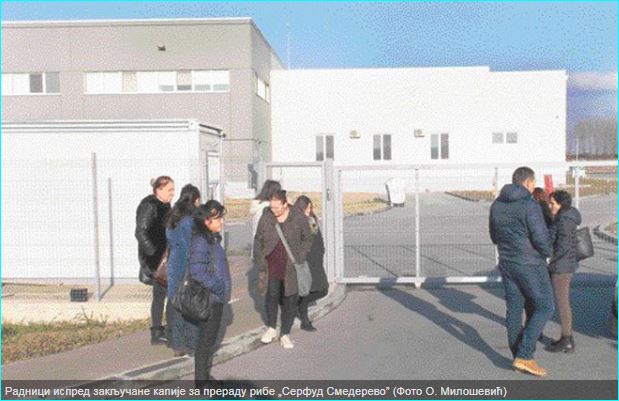 Смедерево – Након помпезног отварања у фебруару 2016. године и крупних обећања, у тишини, на немачку фабрику за прераду рибе „Сервфуд Смедерево” ових дана стављен је катанац, а власници су „испарили” без трага и гласа, пише ПОЛИТИКА.