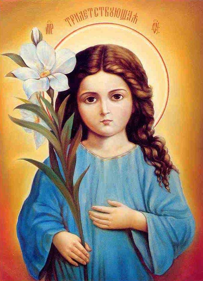 Како се служи Богу? Свим срцем, свом душом, свом мишљу, свом снагом! Тако је Пресвета Богомајка као девојчица ушла у Свети Храм Јерусалимски. Своју душу чистила је непрекидним молитвама, постом, читањем Светих књига, слушањем свештеника Божјих, учествовањем на богослужењима. Сав живот Њен био је очишћавање узношење бића Њеног, душе Њене из овога у онај свет. Сва се светила и осветила, сва се чистила и очистила од сваке и најтананије и најневидљивије нечистоте духовне и телесне. И тако служећи Господу и Богу непрекидно свим срцем, свом душом, свом снагом, свом мишљу, Она је очистила Себе, учинила Себе безгрешном и удостојила се да постане Мајком Божјом.