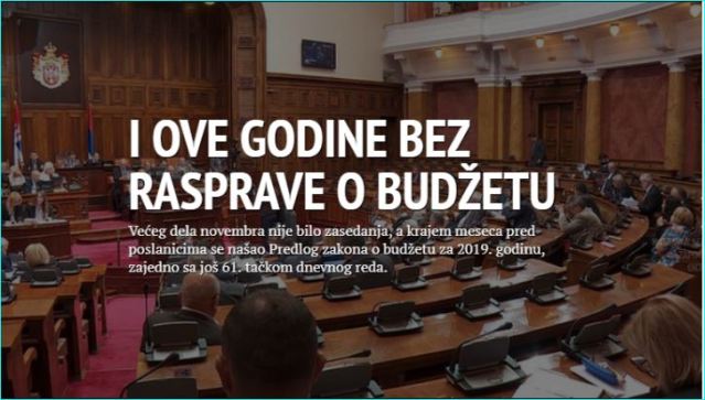 Грађани другу годину заредом нису имали прилике да у Скупштини чују свеобухватну расправу о буџету. Посланици владајуће већине су злоупотребом парламентарних процедура онемогућили дебату о буџетским плановима за следећу годину.