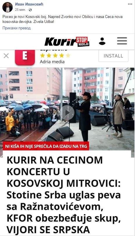 Најављени концерт Светлане Ражнатовић зване Цеца у Косовској Митровици, а коју доводе криминалци Звонко Веселиновић и Милан Радоичић „као поклон српском народу” СНП „Наши” сматрају најгорим обликом примитивизма и бешчашћа.