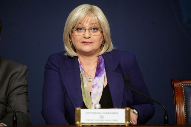 „Не могу да разумем да ме неко пита да ли је динар темпирана бомба, а динар је од стране Блумберга, нимало пријатељски настројене према мени или Србији, проглашен у овој години другом најјачом валутом у свету. Да ли пред једном таквом агенцијом и вешћу која је била образложена неко не треба да се постиди износећи критике на рачун Народне банке Србије или политике Владе Републике Србије“, упитала је Јоргованка Табаковић.