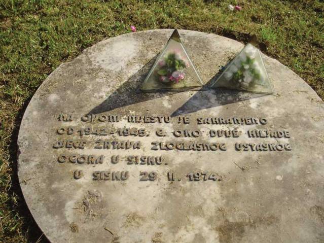 На гробљу у Сиску постојало је обележје за страдалу децу (фотографија у књизи ”Билогора и Грубишно Поље 1941.-1991, др.Милана Басташића, стр. 446 и 448 : полагање венаца на Дечјем гробљу у Сиску).