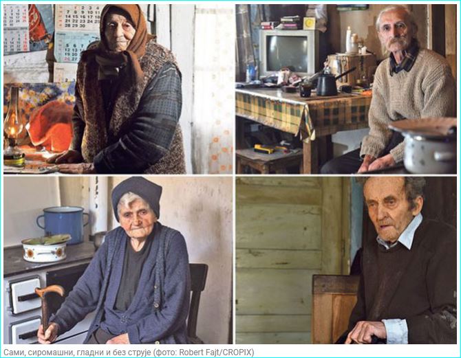 Погрбљена старица слабо види, а чује само ако јој се задере на ухо. На глави јој двије мараме, а с по једном је повезала ножне зглобове. Мајица на себи има четири или пет. Струје нема. По воду иде у бунар у комшилук гдје су некада живјела браћа њеног покојног мужа, али само када нема снијега. До ње се аутом може само када нису јаке кише, јер мјесни пут сијече рјечицу преко које нема моста. Има један пјешачки, али се треба добро пазити на коју од његових дашчица нагазити.