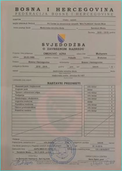 На дипломи Медицинске техничке школе из Санског Моста пише да је ученица Азра Омеровић уписала „преквалификацију“ 22. новембра 2016. године, а да је успешно завршила школовање 15. новембра 2018. године.
