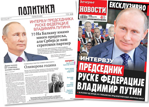 У интервјуу за београдске листове Политика и Вечерње новости, уочи своје посете Србији, Путин је рекао да Русија на Балкану има много пријатеља али да је јој је Србија стратешки партнер.