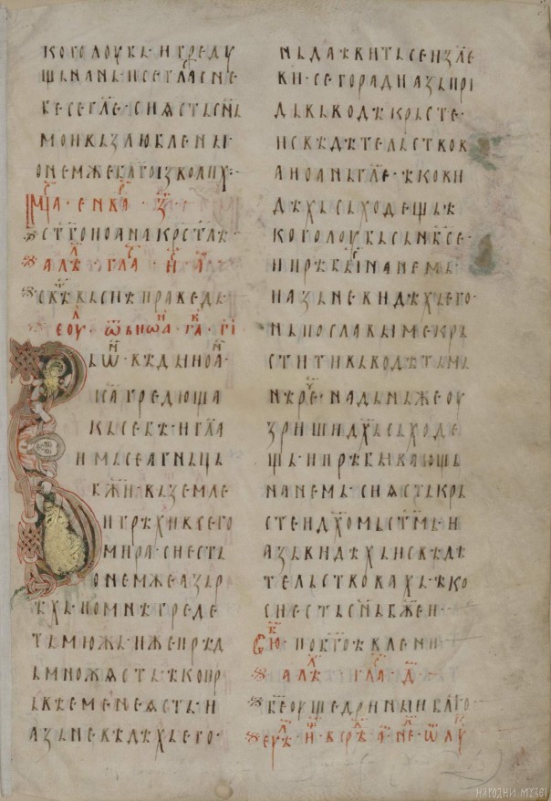 Мирослављево јеванђеље – Петроградски лист страна 1, Национална библиотека Русије, Санкт Петербург
