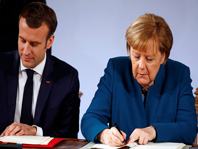 Меркел и Макрон потписали су нови споразум у западнонемачком граду Ахену тачно 56 година од када су Шарл Де Гол и Конрад Аденауер потписали историјски Јелисејски споразум о помирењу 1963. године који је дао тон блиским односима двије земље послије сукоба завршених Другим свјетским ратом.