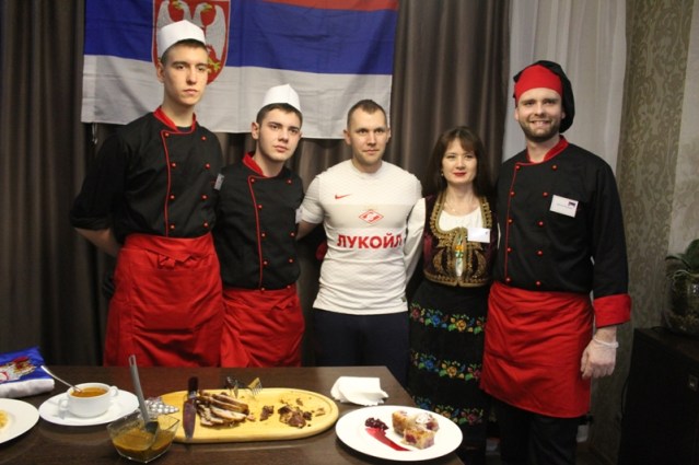 Ученици школе су Илија Гаврић и Александар Радуловић показали себе озбиљним и искусним куварима и упознали московску публику са српском кухињом и традицијама божићног стола. Учесници такмичења и бројни гости Фестивала могли су да попију праву домаћу српску ракију и да уживају у националним српским јелима: пребранцу, чесници, пити са вишњама на пожаревачки начин, гибаници, зељаници, ванилицима, савијачи са сиром, ајвару, кифлицима са сиром и џемом, а такође у пршути, кулену, салами и другим кобасицама од пожаревачког произвођача.