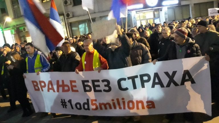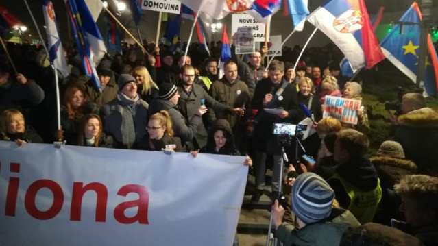 Овим речима новинар жељко Бодрожић отпочео је своје обраћање учесницима четвртог протеста „1 од 5 милиона – Стоп крвавим кошуљама“ који је почео у 18 часова на платоу испред Српског народног позоришта.