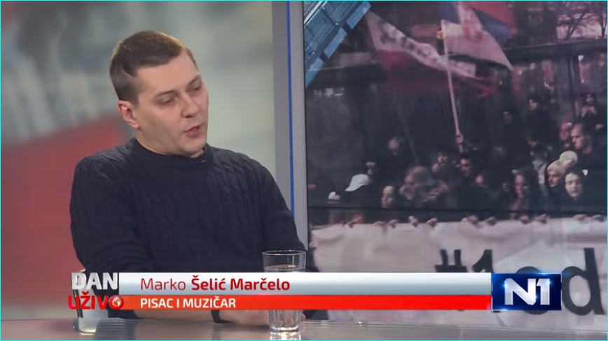 На протестима се борим против човека који оличава све против чега сам се икада борио, изјавио је у Дану уживо ТВ Н1 писац и музичар Марко Шелић Марчело. Поручио је да није „бунтовник без разлога“, већ да у земљи више имамо имамо „разлоге без бунтовника“.