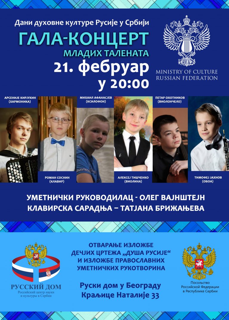 Најављен је и концерт класичне музике 21. фебруара у извођењу најбољих ученика музичких школа у Русији, лауреата сверуских и међународних такмичења, а 22. фебруара у Руском дому биће одржана конференција посвећена културно-историјским основама руско-српских односа.
