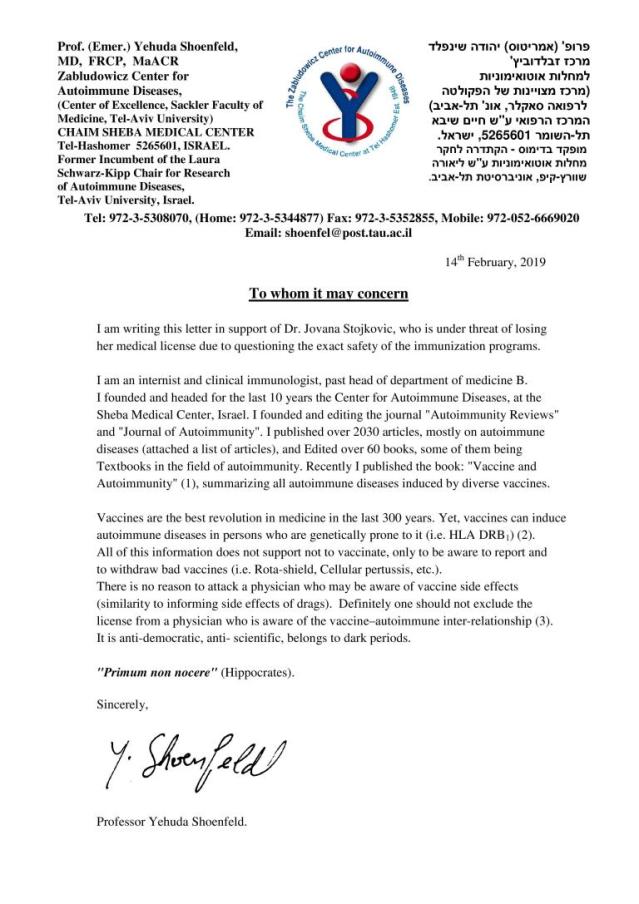 Нема разлога да се нападне лекар који може бити свестан нежељених дејстава вакцина (слично као и информисати о нежељеним дејствима лекова). Дефинитивно не треба одузети лиценцу лекару који је упознат са међуодносом између вакцина и аутоимуних интеракција (3). Такав став је је антидемократски, антинаучни став који припада мрачним периодима.